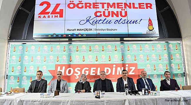 Kahraman’ın ardından, Onikişubat Belediye Başkanı Hanefi Mahçiçek öğretmenlere hitap etti. Davetlilerin 24 Kasım Öğretmenler Günü’nü kutlayan Başkan Mahçiçek, “Öncelikle, geleceğimizin mimarı, evlatlarımızı emanet ettiğimiz siz değerli öğretmenlerimizin 24 Kasım Öğretmenler Günü’nü gönülden kutluyorum. Sağlık sıhhat için çalışarak, görevlerinizde muvaffak olmayı nasip etsin İnşallah. 80’li yıllardan itibaren Kahramanmaraş’ımıza çeşitli görevlerle hizmet etme fırsatını Cenab-ı Hakk bize nasip etti. Şunu belirtmem gerekir ki Onikişubat Belediyesi’nin önceliği eğitim. Fiziki çalışmaları yaparız ama bizim için öncelikli olan eğitim. 6 tane okul yaptık, 7’ncisini de yapacağız inşallah. 7 Güzel Adam’ın memleketine toplamda 7 tane okul yapmış olacağız. Hem de proje okul yapacağız, Türkiye’de nadir okullardan biri olacak” dedi.