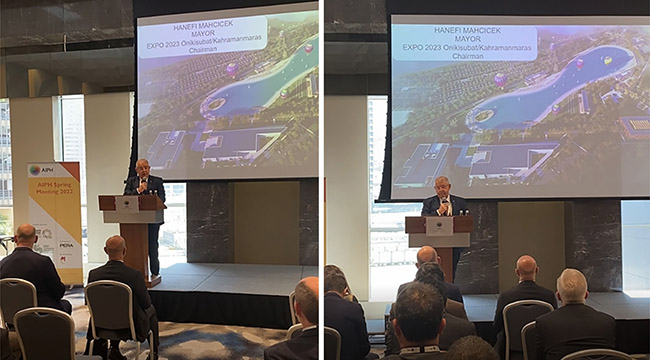 EXPO 2023 Proje Alanı’nın büyük ölçüde tamamlandığını belirten Başkan Mahçiçek, Cumhurbaşkanı Recep Tayyip Erdoğan’a desteklerinden dolayı teşekkür ederek, “Sonuç olarak ifade etmek isterim ki EXPO kapsamında yaptığımız çalışmalarla projenin önemli aşamalarını tamamlamış bulunmaktayız. Kalan kısımları da açılışa kadar tamamlayacağız. AIPH’e projenin başından beri bizlerle yakın iş birliği içerisinde çalışmaları dolayısıyla teşekkür ederim. Tüm Kahramanmaraş halkımızın büyük bir şevk ve heyecanla beklediği EXPO 2023 kapsamındaki projelerin realize edilmesinde sayın Cumhurbaşkanımız Recep Tayyip Erdoğan hep bizim yanımızda olmuştur. Bu vesileyle kendisine şükranlarımı sunuyorum. Onikişubat Belediye Başkanı olarak sizleri Kahramanmaraş’ta ağırlamaktan onur duyacağız” şeklinde konuştu.