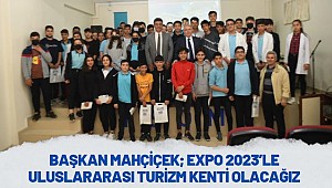 EXPO 2023 tanıtım filminin izlenmesiyle başlayan programın ardından öğrencilere hitap eden Başkan Mahçiçek, Kahramanmaraş’ın birçok değere sahip olmasına karşın tanıtım noktasında eksikliğine dikkat çekerek, “Gerçekten rüya gibi değil mi gençler, bittiği zaman çok daha güzel olacak İnşallah. Ben en az 30-40 ülke gördüm, Kahramanmaraş gerçekten güzel bir memleket. Tabiatıyla, insanlarıyla, geçmişiyle, geleceğiyle çok güzel bir şehrimiz var ama bizim bir eksiğimiz var. Nedir o? Tanıtım. Her şeyimiz var, mesela diyoruz ki Edebiyatın Başkenti, İstiklalin başkenti. Gerçekten de Kahramanmaraş istiklalin başkentidir, çünkü Kurtuluş Savaşı, Kahramanmaraş’tan başlamıştır. Diyoruz ki; Kahramanmaraş’ın çok muazzam bir sanayisi var, 500’ün üzerinde fabrikası var. Türkiye’deki iplik üretiminin 3’te 1’ini, dokumanın yüzde 17’sini, çelik eşyanın yüzde 64’ünü, enerjinin yüzde 12’sini Kahramanmaraş üretiyor ama ‘Kahramanmaraş nerede?’ derseniz kimse bilmiyor. Türkiye’nin yüzde 99’u Kahramanmaraş’ın Akdeniz bölgesinde olduğunu bile bilmiyor. Kahramanmaraş’ın tanınma eksikliğini işte EXPO 2023 gibi projelerle gideririz. Diyelim ki her sene 8-10 tane etkinlik yapsak, seminerler düzenlesek kaç kişi gelir? Böyle uluslararası projeye en az 40-50 ülke katılır. Ama EXPO’yu açtığımızda inşallah ilk altı buçuk aylık sürede 2 milyon insan gelecek diye tahmin ediyoruz. Sonraki yıllarda ise her sene 1 milyon kişi EXPO alanımızı ziyaret edecek” dedi.