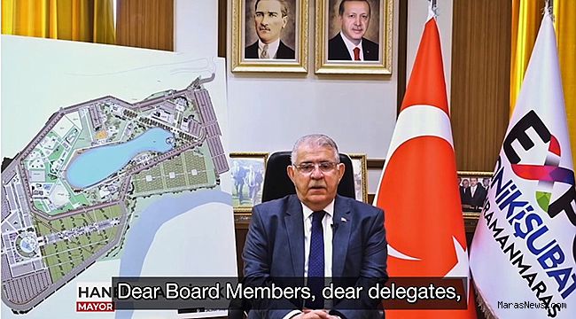 Başkan Mahçiçek’in delegelere yaptığı konuşmada, EXPO 2023 Kahramanmaraş projesinin, nasıl EXPO sonrası dönemi de kapsayan bir şehirleşme projesine dönüştüğünü anlattı.