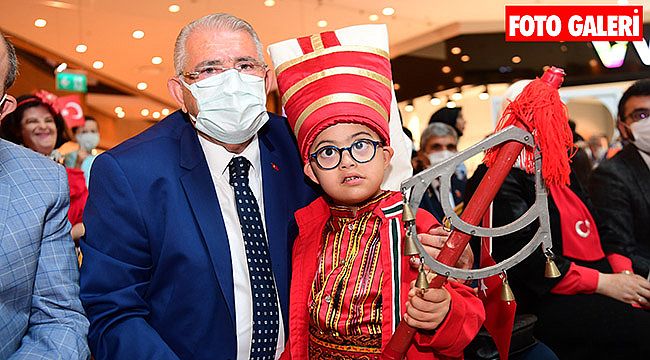 Saygı Duruşu ve İstiklal Marşı’nın okunmasının ardından down sendromlu öğrenciler yeteneklerini sergilediler. Minik Kerem’in piyano ile İstiklal Marşı’nı çalması büyük beğeni topladı. Daha sonra öğrencilerin şiir okumalarıyla devam eden programda oratoryo, zeybek, bando, mehteran ve dans gösterileri izleyenleri büyüledi. Öğrencilerin yaptığı resimlerden oluşan sergi de protokol tarafından kurdele kesilerek açılışı yapıldı.