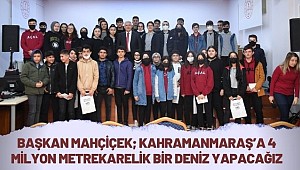 Su Tutucu Sedde Aksı Projesi ile Kahramanmaraş’a 4 milyon metrekarelik bir deniz kazandıracaklarını da anlatan Mahçiçek, “Kılavuzlu Köprüsü’nün alt tarafında yazın sular çekildiğinde bir çevre felaketi yaşanıyordu. Ama kışın burası sularla dolar, deniz olurdu. Şimdi bu çevre felaketini önleyeceğiz. Bu alanla ilgili çok güzel bir projemiz var. Ceyhan Nehri’nin en dar kısmına Su Tutucu Sedde Aksı yapacağız suyu tutmak için. 434 kodunda suyu burada tutacağız. Önce kirliliği temizleyeceğiz. Suyu burada tuttuğumuz zaman 4 milyon metrekarelik bir deniz olacak. Sonra bu denizin etrafına çok katlı olmayan yerleşim alanları yapacağız. Bir marinamız olacak, tekneler park edebilecek ve tekne gezileri yapılacak. Çevresinde rekreasyon alanları olacak, piknik alanları, oturma grupları yer alacak. Yürüyüş ve bisiklet yolları da olacak. Suyun üzerinde su sporları aktiviteleri de yapılacak. Projemiz tamam, her şey hazır İnşallah Kahramanmaraş’a deniz getireceğiz. Bizim öngörümüze göre 150 bin insanımızın yaşayacağı yeni bir şehir inşa edeceğiz” ifadelerini kullandı.