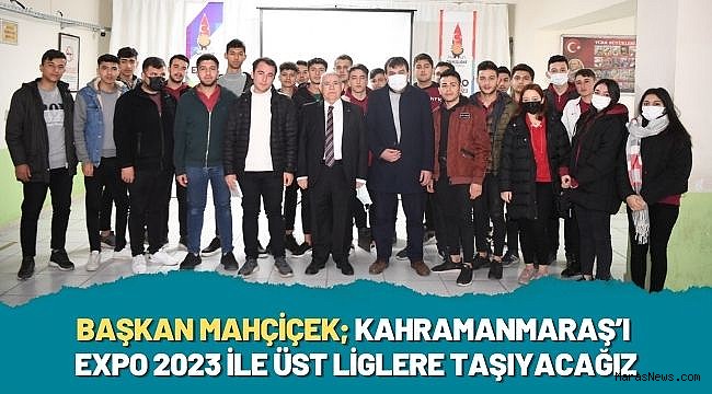 Kahramanmaraş’ın eksik noktalarını belirleyerek çalışmalar hayata geçirdiklerini belirten Başkan Mahçiçek, “Bu anlamda gördüğümüz eksikleri bertaraf edip, şehrimizin geleceğini daha güçlü ve güzel temeller üzerinde inşa etmeliyiz. Kahramanmaraş’ımızın her şeyi vardı, sanayisi var, kültürü var, doğal güzellikleri var ama tanıtım noktasında da büyük eksikliği vardı. Türkiye nüfusunun yüzde 99’u Kahramanmaraş’ın Akdeniz bölgesinde olduğunu bile bilmiyordu. Böyle bir eksiğimiz vardı. Bu eksikliği nasıl telafi edebiliriz diye düşündük ve böylesine önemli bir uluslararası projeyi buraya taşımamız gerektiği kanaatine vardık. Çünkü bizim Kahramanmaraş’la ilgili hayallerimiz var gençler. Sizin de şehrinizle ilgili hayallerinizin artık oluşması ve kendinizi o hayali gerçekleştirmek üzere yetiştirmeniz gerek. Böyle uluslararası projeler yapacağız, Kahramanmaraş’ı dünyaya taşıyacağız. Marka değerini, saygınlığını, bilinirliğini dünya çapında artıracağız İnşallah. Bunu yapmamız lazım. EXPO 2023 ile birlikte Kahramanmaraş’ı değiştireceğiz dönüştüreceğiz ve geleceğe damga vuracağız” ifadelerini kullandı.
