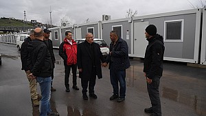 İnceleme ve denetlemelerde bulunmak üzere konteyner kente giden Başkan Mahçiçek, konteynerlere yerleşen depremzede ailelerle bir araya geldi.