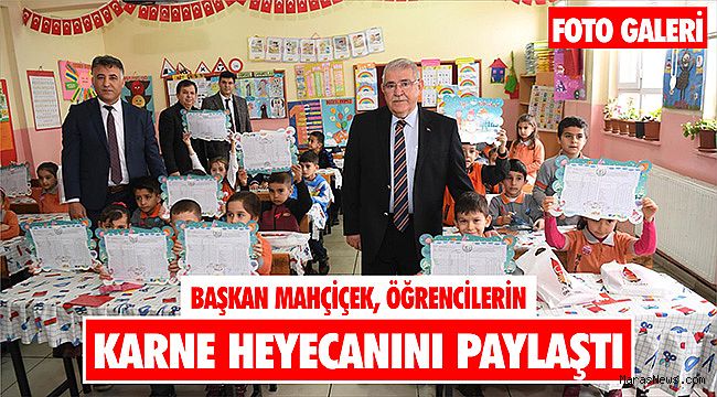 Öğrencilere karnelerini ve hediye olarak kitap dağıtan Başkan Mahçiçek, çocuklara iyi dilek temennilerinin ardından okuldan ayrıldı.