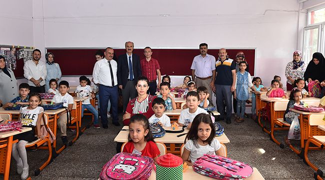 Okay, öğrencilere kırtasiye malzemeleri hediye ederek heyecanlarını paylaştı.