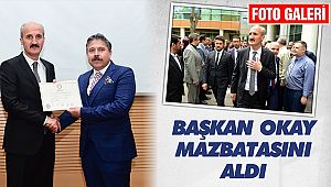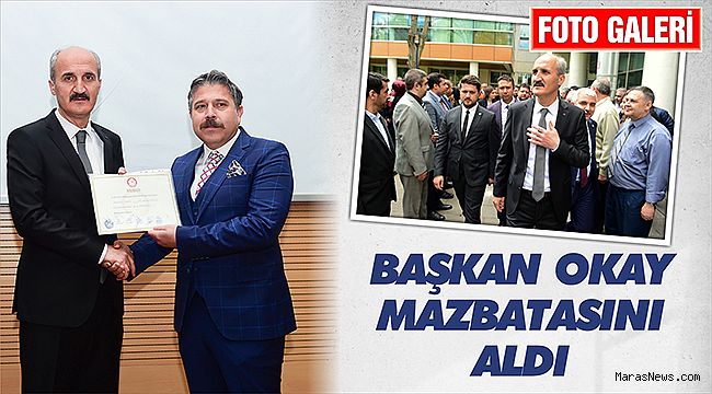 Mazbata töreninin ardından Belediye Hizmet Binası’na geçen Başkan Okay,