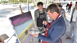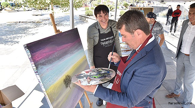 Türkoğlu Millet Meydanında çalışmalarına devam eden ressamların eserlerini tek tek inceleyen Türkoğlu Belediye Başkanı Osman Okumuş'a sanatçılar; Sanata ve sanatçıya verdiği değerden dolayı teşekkür ederek, hayata geçirdiği projelerin tüm Türkiye’ye örnek olduğuna dikkat çektiler.
