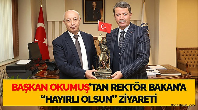 Kahramanmaraş İstiklal Üniversitesi Rektörlüğü’ne atanan Prof. Dr. Bakan’a başarı dileklerini ileten Başkan Okumuş, “Öncelikle Sayın Hocamıza başarılar diliyoruz. Bu görevi layıkıyla ifa edeceğine de yürekten inanıyoruz. Ziyaretimizde de kendisiyle istişarelerde bulunduk. Bundan sonraki süreçte de işbirliği içerisinde çalışmaya devam edeceğiz” diye konuştu.
