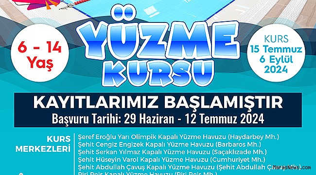 Bu kapsamda Onikişubat Belediyesi’nin tesislerden tam anlamıyla istifade etme amacıyla her yıl düzenlediği yüzme kurslarında yeni dönem başlıyor. Yeni dönem 15 Temmuz - 6 Eylül tarihleri arasında yapılacak, başvurular ise 29 Haziran - 12 Temmuz tarihleri arasında kabul edilecek.