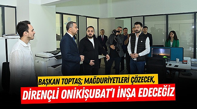 İnşaat Mühendisi olması sebebiyle gerek seçim sürecinde gerekse Onikişubat Belediye Başkanı seçilmesinin ardından yoğun bir çalışma temposuyla daha güçlü ve daha dirençli Onikişubat’ın inşa ve ihyası için mesai yapan Başkan Toptaş, seçim vaatlerinden biri olan Yerinde Dönüşüm Ofisi’ni hayata geçirdi.