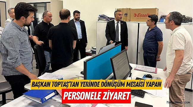 Ziyaretin ardından Başkan Toptaş, İmar ve Şehircilik Müdürlüğü personeline kolaylıklar dileyerek çalışmalarını yerinde inceledi, sürecin sorunsuz işlemesi için desteklerinin devam edeceğini ifade etti.