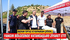 Ziyaret sırasında, bölgede devam eden soğutma çalışmaları hakkında ekiplerden son durumu öğrenen Toptaş, belediyenin destekleri konusunda istişarelerde bulundu.