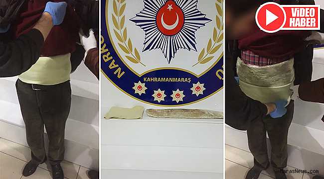 Edinilen bilgilere göre; Kahramanmaraş şehir girişinde Narkotik Şube Müdürlüğü ekiplerince durdurulan şehirlerarası bir otobüste yolcu olarak bulunan Diyarbakır nüfusuna kayıtlı Nurettin Akgül’ün endişeli tavırları polisin dikkatini çekti. Narkotik polisleri tarafından yapılan aramada; Akgül’ün beline sarılı korse içerisinde 1 kilogram esrar maddesi ele geçirildi. Uyuşturucu suçundan çok sayıda kaydı olduğu da tespit edilen şüpheli, gözaltına alınarak Kahramanmaraş Narkotik Suçlarla Mücadele Şube Müdürlüğü’ne götürüldü.