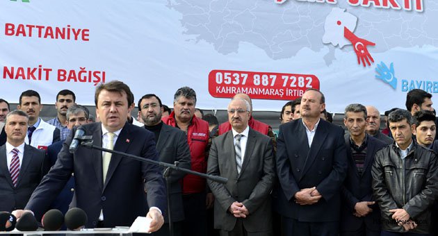 Kahramanmaraş’ımızın güzel insanları bugün Bayırbucaklı Türkmen kardeşlerimiz içi de dayanışmanın en güzel örneğini sergiliyor. Orada yaşayan kardeşlerimizin gördüğü zulme sessiz kalamazdık ve kalmayacağız da.Bugün de 47. Tırımızı göndermenin mutluluğunu yaşıyoruz. Bayırbucaklı Türkmen kardeşlerimiz de Aziz Milletimizin vakur duruşuna yakışır bir şekilde duruş göstermektedirler. Yapılan zulme, bombardımana karşı dik durmakta ve vatanlarını, namuslarını, canları pahasına da olsa korumaktadırlar. Allah onların yar ve yardımcıları olsun. Biz sadece Kahramanmaraş olarak değil tüm Türkiye olarak onların yanındayız. Sayın Cumhurbaşkanımız ve Başbakanımız ülkemiz adına gerekli mesajlarını vererek bu kardeşlerimizin yanında olduklarını her fırsatta dile getirmektedirler. Ülkemiz olarak bütün şehirlerimizle birlikte Bayırbucak Türkmen kardeşlerimizin yanındayız ve yanlarında olmaya da devam edeceğiz” diye konuştu.