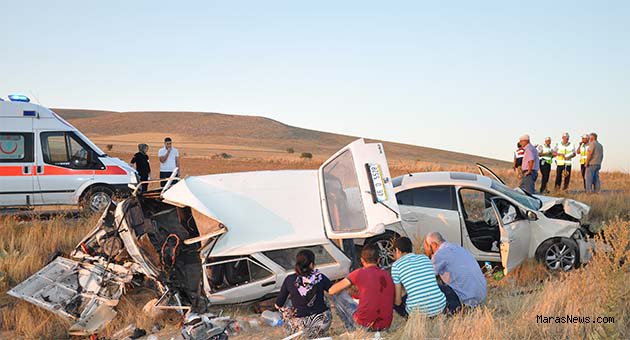 Kahramanmaraş’ta iki otomobilin kafa kafaya çarpışması sonucunda meydana gelen trafik kazasında 3 kişi öldü biri ağır 3 kişi yaralandı.