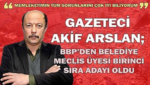 Kahramanmaraş Amatör Spor Kulüpleri Federasyonu Eski Genel Sekreteri, Türkiye Futbol Federasyonu Kahramanmaraş Eski İl Temsilci Yardımcısı, Gazeteci Akif Arslan, Büyük Birlik Partisi Onikişubat Belediye Meclis Üyesi birinci sıra adayı seçildi. Duayen Gazeteci Arslan, 31 Mart tarihinde gerçekleştirilecek olan yerel seçimler için Onikişubat Belediye Meclis Üyesi aday adaylığı resmi başvurusunu İlçe başkanlığı’na teslim etmesinin ardından birinci sıra adayı olarak seçildi.