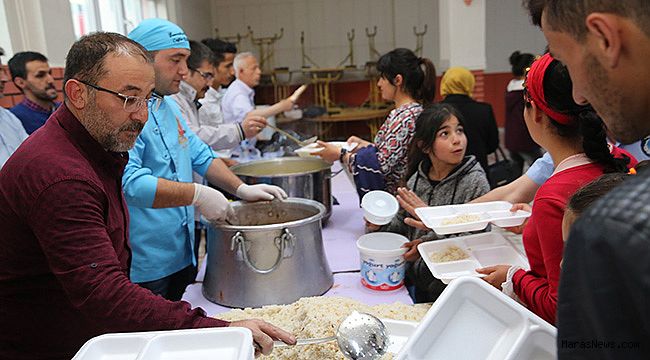 Belediyesi tarafından kurulan iftar sofrasında her gün bin kişilik yemek
