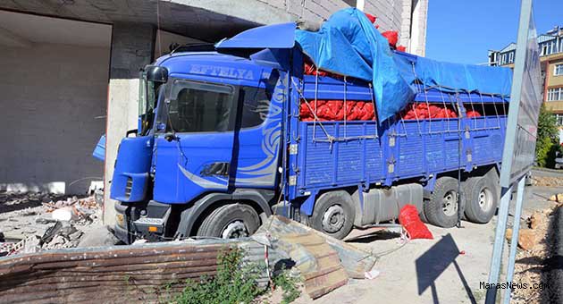 Alınan bilgiye göre, sabah 04.30 sıralarında meydana gelen kazada, Kayseri’den, Kahramanmaraş istikametine giden Ali B.'nin (41) kullandığı 07 NBA 08 plakalı salçalık biber yüklü kamyon, Göksun’da yapılan yol çalışması nedeniyle virajı alamayarak inşaat halindeki apartmana çarptı.