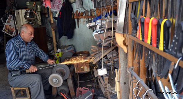 Kurban Bayramı nedeniyle bıçağa talebin arttığını dile getiren bıçak ustaları, "Günde yaklaşık 50 bıçak üretiyoruz. Eskiden bıçaklar top mermileri ve tren raylarından yapılırdı. Şimdilerde şerit çelik çıktı, bıçakları çelikten üretiyoruz" dediler.