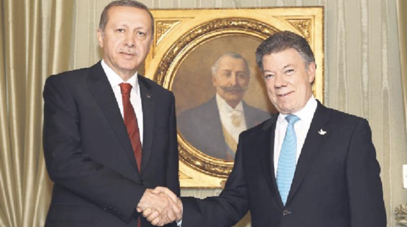 Cumhurbaşkanı Tayyip Erdoğan, Kolombiyalı işadamlarını Türkiye’de yatırım yapmaya çağırarak “bir fincan kahvenin 40 yıl hatırı vardır’, dolayısıyla fincanların sayısı çok, hatırı da bayağı uzuyor. Unutmak artık mümkün değil. Bu bakımdan aramızdaki bağlar ilişkiler bir muhabbet zinciri olarak geleceğe farklı şekilde yürüyor” dedi. Erdoğan ve Kolombiya Devlet Başkanı Juan Manuel Santos Calderon, Bogota’da düzenlenen Türkiye-Kolombiya İş Forumu’nda iki ülke işadamlarına hitap etti.
