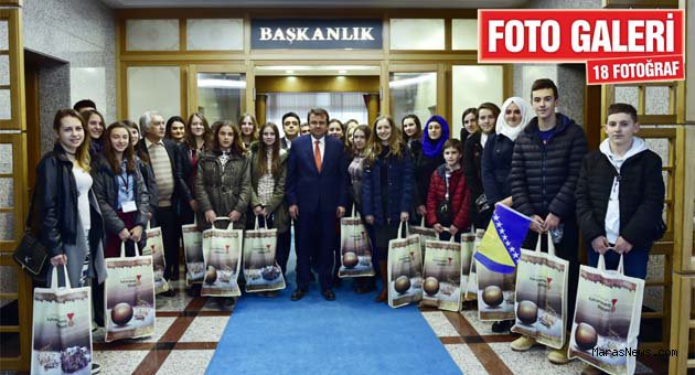 Bosna Hersek’te Cazin Belediyesi’nin organizasyonu ile iki aylık süren kurslarda Türkçe öğrenen öğrencilere hediye olarak düzenlenen Türkiye ile kaynaşma gezisi için Kahramanmaraş’a gelen 30 öğrenci Büyükşehir Belediye Başkanı Fatih Mehmet Erkoç’u ziyaret ettiler.