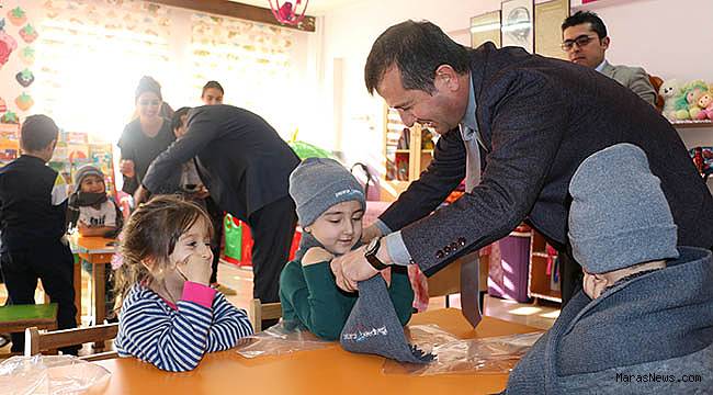 olan bere ve atkı, Pazarcık Belediye Başkanı Yakup Hamdi Bozdağ okullarda