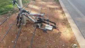 Bisikletin sadece iskeletini bırakan hırsızların ise kim olduğu araştırılıyor. (KENAN ONARAN)