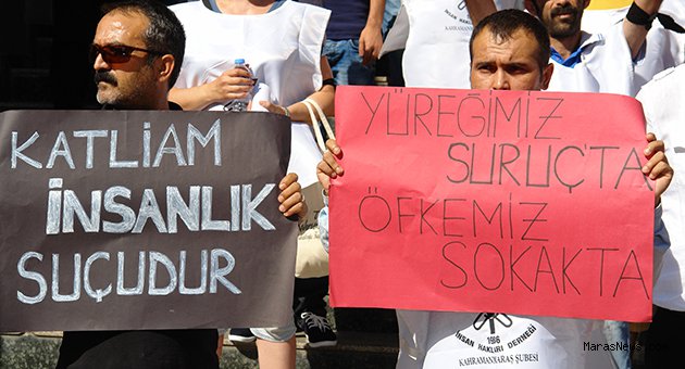 Kahramanmaraş İl Özel İdare Binası önünde basın açıklaması yapan grup, “Bugün Suruç’ta yarın Maraş’ta, sessiz kalma”, “Suruç’ta katliam var”, “ Katliam insanlık suçudur” ve “Yüreğimiz Suruç’ta, öfkemiz sokakta” yazılı pankartlar taşıdı. Gruba; İnsan Hakları Derneği Kahramanmaraş Şubesi, Pir Sultan Abdal Kültür Derneği Kahramanmaraş Şubesi, Eğitim Sen Kahramanmaraş şubesi, Kahramanmaraş HDP İl Örgütü, Kahramanmaraş CHP İl Örgütü destek verirken grup adına basın açıklamasını İnsan Hakları Derneği Kahramanmaraş Şube Başkanı Selçuk Delibaş yaptı. Delibaş yaptığı basın açıklamasında; “Dün Suruç'ta meydana gelen alçakça saldırı, bizleri derinden yaralamıştır. Yaşam hakkına yönelik bu alçakça saldırıyı kınıyoruz. Amaçları Kobani’de çocuklara yardım ve kütüphane açmak olan ve tamamen yardım amaçlı Kobani'ye gitmek isteyen Sosyalist gençler IŞİD çeteleri tarafından alçakça katledilmiştir. 2 yıldır çeşitli dönemlerde uyarılarımıza rağmen geliyorum diyen bu hain saldırının önlenememiş olması da ayrıca ilgi çekicidir. Ülkeyi yönetenlerin kullandığı nefret dili, onlarca cezasızlıklar maalesef bizleri bu sürece getirmiştir. IŞİD, katliam, tecavüz ve yerinden etme pratiği...” dedi.
