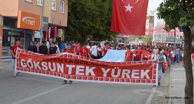 A.Taner Ekici Bulvarı’nda toplanan vatandaşlar, Cumhuriyet Caddesi’nde Türk bayraklarıyla birlikte tekbir getirerek yürüyüş düzenledi. Cumhuriyet Meydanı’nda saygı duruşu ve İstiklal Marşı’nın okunmasının ardından Kuran-ı Kerim okundu, buradan da askerlik şubesine gidilerek askerlere Türk bayrağı hediye edildi.