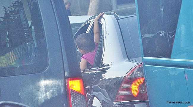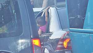 Yaklaşık 3-4 dakika araçtan sarkan çocuk daha sonra ise içeriye alındı.