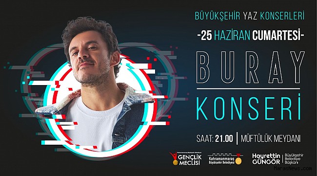 Kahramanmaraş Büyükşehir Belediyesi, çeşitli sosyal etkinlikleri Kahramanmaraşlılarla buluşturmaya devam ediyor. Büyükşehir Belediyesi ve Gençlik Meclisi iş birliğiyle 25 Haziran Cumartesi günü gerçekleştirilecek etkinlikte pop müzik sanatçısı Buray, Kahramanmaraşlılarla bir araya gelecek. Müftülük Meydanı’nda gerçekleştirilecek konser, saat 21.00’de başlayacak. Büyükşehir Belediyesi’nden yapılan açıklamada, “Sevilen sanatçı Buray, 25 Haziran Cumartesi günü müzikseverlerle bir araya gelecek. Müftülük Meydanı’nda gerçekleştirilecek ücretsiz etkinliğe tüm Kahramanmaraşlılar davetlidir” ifadelerine yer verildi.