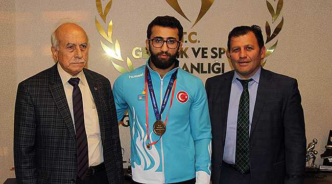 dönen Milli Güreşçimiz Gençlik Hizmetleri ve Spor İl Müdürlüğün de törenle