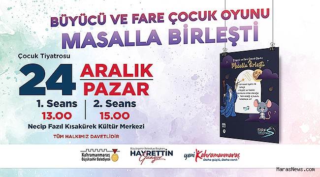 Sosyal belediyecilik çerçevesinde daima vatandaşların yanında olan, farklı yaş gruplarına yönelik kültür sanat faaliyetlerini kesintisiz sürdüren Kahramanmaraş Büyükşehir Belediyesi, çocukları da unutmuyor. Çocuklara yönelik birbirinden eğitici ve öğretici kurs ve etkinliklerini sürdüren Büyükşehir Belediyesi, 24 Aralık Pazar günü ‘Büyücü ve Fare’ adlı tiyatro gösterisini miniklerle buluşturacak. Necip Fazıl Kısakürek Kültür Merkezi’nde minik izleyici karşısına çıkacak gösteri, saat 13.00 ve 15.00’da 2 seans olarak sahnelenecek. Büyükşehir Belediyesinden yapılan açıklamada, büyücü ve farenin tatlı macerasını ve minik farenin iç huzuru bulmak için verdiği mücadeleyi konu alan gösteriye tüm çocukların davetli olduğu belirtildi.