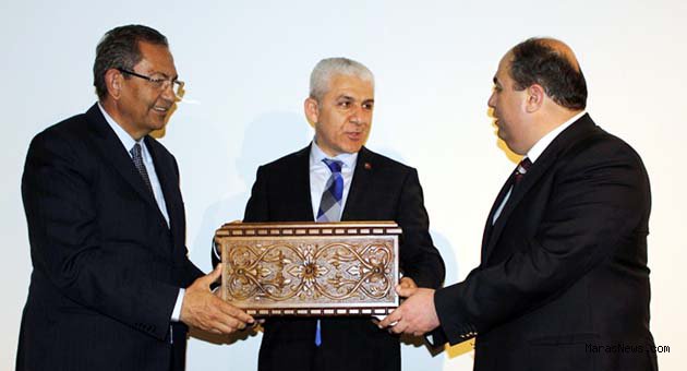 Konuşma ve sunumların ardından KMTSO Yönetim Kurulu Başkanı Kemal Karaküçük ve KMTSO Meclis Başkanı Hanifi Öksüz, Ekonomi Bakanlığı İhracat Genel Müdürü Veysel Parlak’a yöreye ait Maraş işi oyma ceviz sandık hediye etti.