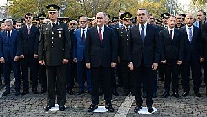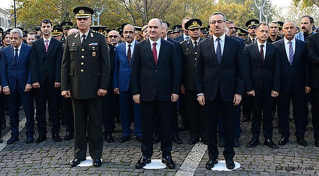 Afşin Hükümet Konağı'ndaki Atatürk Anıtı önünde tören