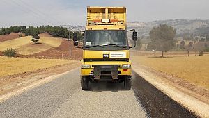 kaplama çalışmaları sürüyor. Grup yolunun 12 kilometresinin asfaltı tamamlandı.