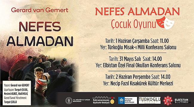 Kahramanmaraş Büyükşehir Belediyesi, ulusal ve uluslararası kuruluşlarla iş birliğiyle şehirde çeşitli etkinlikler gerçekleştirmeyi sürdürüyor. Hollanda Büyükelçiliği’nin Uluslararası Kültürel Hareketlilik Fonu çerçevesinde finanse ettiği proje kapsamında, çocuk edebiyatı yazarı Gerard Van Gemert tarafından kaleme alınan Ademloos (Nefes Almadan) adlı edebi eser sahneye uyarlanarak ilçelerde ve komşu illerde öğrenciler ile buluşturulacak. Çocukları ırkçılık ve kültürel farklılıklara karşı bilinçlendiren, dayanışma ve paylaşmayı anlatan eserin tiyatro sahnesine aktarılması ile çocukların toplumla empati kurma konusunda bilinçlendirilmesi, yerel halk ile mülteciler arasındaki iletişimin güçlendirilmesi hedefleniyor.