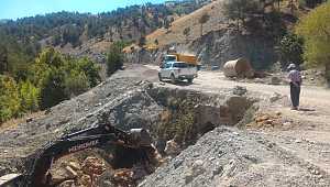 Toplam 13 kilometre uzunluğunda ve 8 metre genişliğindeki yolda bir taraftan alt yapı çalışmaları ve büz atımı gerçekleştirilirken, diğer taraftan Büyükimalı-Çakıroğlu yolunda ise filler serim ve sıkıştırma çalışmaları sürdürülüyor.