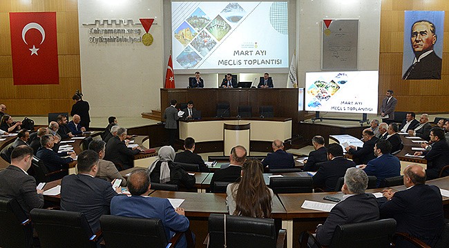 Kahramanmaraş Büyükşehir Belediyesi Meclis Toplantı Salonu’nda gerçekleştirilen Mart ayı Olağan Meclis Toplantısı, Meclis Başkan Vekili Mehmet Beşen’in başkanlığında yapıldı. İlçe belediye başkanları ve meclis üyelerinin katılımıyla düzenlenen toplantıda, belediyenin yürüttüğü ve planladığı projeler, şehir genelindeki hizmetler ve vatandaşları ilgilendiren çeşitli konular ele alındı. Toplantıda, Kahramanmaraş’ın gelişimine katkı sağlayacak çeşitli konular görüşüldü. Ulaşım, altyapı, çevre düzenlemeleri ve sosyal hizmetler gibi birçok başlığın yer aldığı toplantıda, toplam 28 gündem maddesi müzakere edilerek karara bağlandı. Meclis Başkan Vekili Mehmet Beşen, toplantının sonunda yaptığı konuşmada, alınan kararların Kahramanmaraş’a hayırlı olmasını temenni ederek toplantıya katılım sağlayan herkese teşekkür etti.