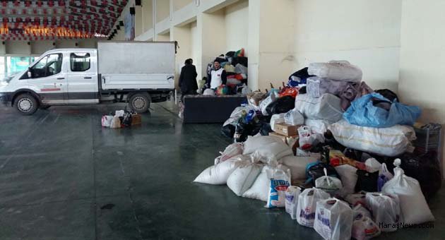 Bayırbucak Türkmenleri’ne yardım amacıyla Hayrat Vakfı ile ortaklaşa gerçekleştirilen yardım kampanyası kapsamında kampanyaya destek vermek isteyen vatandaşların getirdikleri yardımlar Kahramanmaraş Fuar Merkezi (KAFUM)’nde istiflenerek paketleniyor.