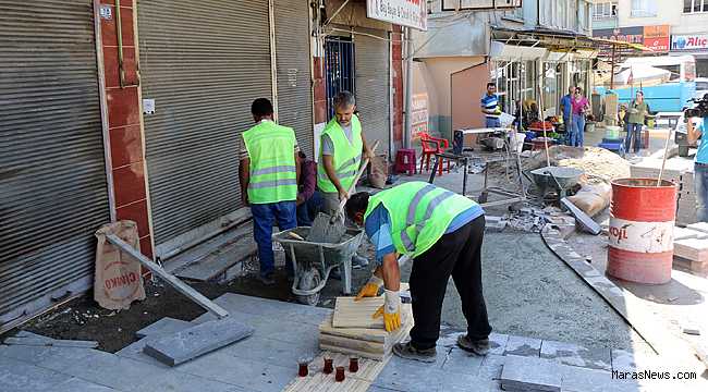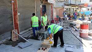 İşleri Şube Müdürlüğü ekiplerince yürütülen çalışmalarda kaldırımlara bazalt