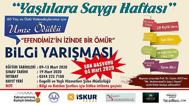Ömür” Bilgi Yarışmasına başvurular, Kahramanmaraş Büyükşehir Belediyesi Engelli
