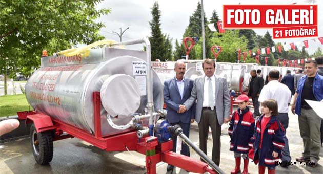 Başkan Erkoç’un konuşmasının ardından il ve ilçe merkezlerine uzak 50 mahalle muhtarına yangına müdahale tankları dağıtıldı.