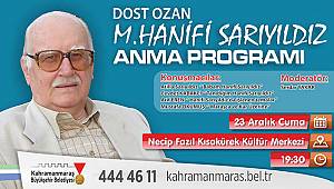 geçekleştirilecek olan Anma Program’ında Dost Ozan Hanifi Sarıyıldız anılacak.