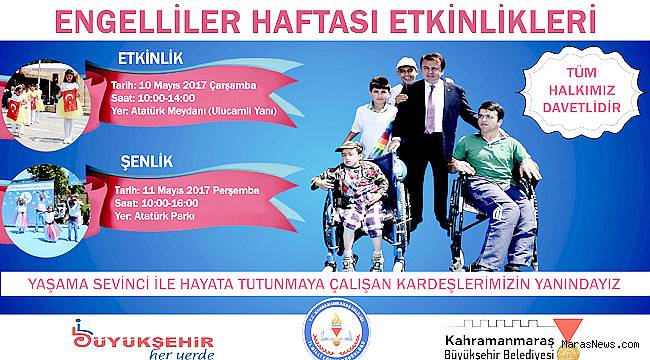 Kahramanmaraş Büyükşehir Belediyesi Sağlık ve Sosyal işler Dairesi Başkanlığı Engelliler Şube Müdürlüğü ve İl Milli Eğitim Müdürlüğü işbirliği ile gerçekleştirilecek etkinliklerin ilki 10 Mayıs 2017 Çarşamba günü Atatürk Meydanı’nda gerçekleştirilecek.