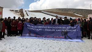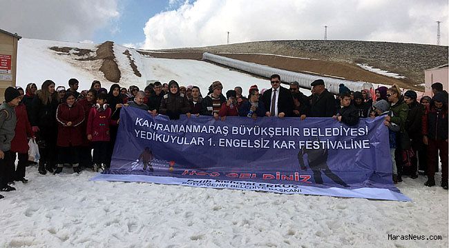Kahramanmaraş Büyükşehir Belediyesi Mehter Takımı’nın çaldığı marşlar eşliğinde engelli vatandaşlar kartopu oynayıp, kayak keyfi yaşadılar.