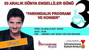 Engelliler günü dolayısıyla 3 Aralık 2017 Pazar günü saat 19.00’da Mehmet Akif Ersoy Kültür Merkezi’nde ‘Farkındalık Programı ve Konser’ de Kürşat sahne alacak.