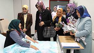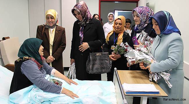 Hastanesi’nde yatan kadın hastalar ziyaret edilerek gül verildi.