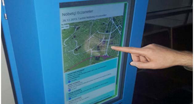 Bu noktalar 2016 yılının ilk yarısında tüm il genelinde uygulanacak. Artık vatandaşımız hastaneye gittiğinde adliyeye gittiğinde ilçe belediyelere gittiğinde yani belediyeye gelmeden, akıllı kiosklar sayesinde Büyükşehrimizin e-belediye hizmetlerinden faydalanacaklar. Bunun yanı sıra vatandaşlarımız nöbetçi eczane, cenaze hizmetleri, e-rehber, toplu taşıma gibi daha birçok konularda da uzaktan bilgi sahibi olmak adına sistemden yararlanabilecekler” denilerek bilgi verildi.